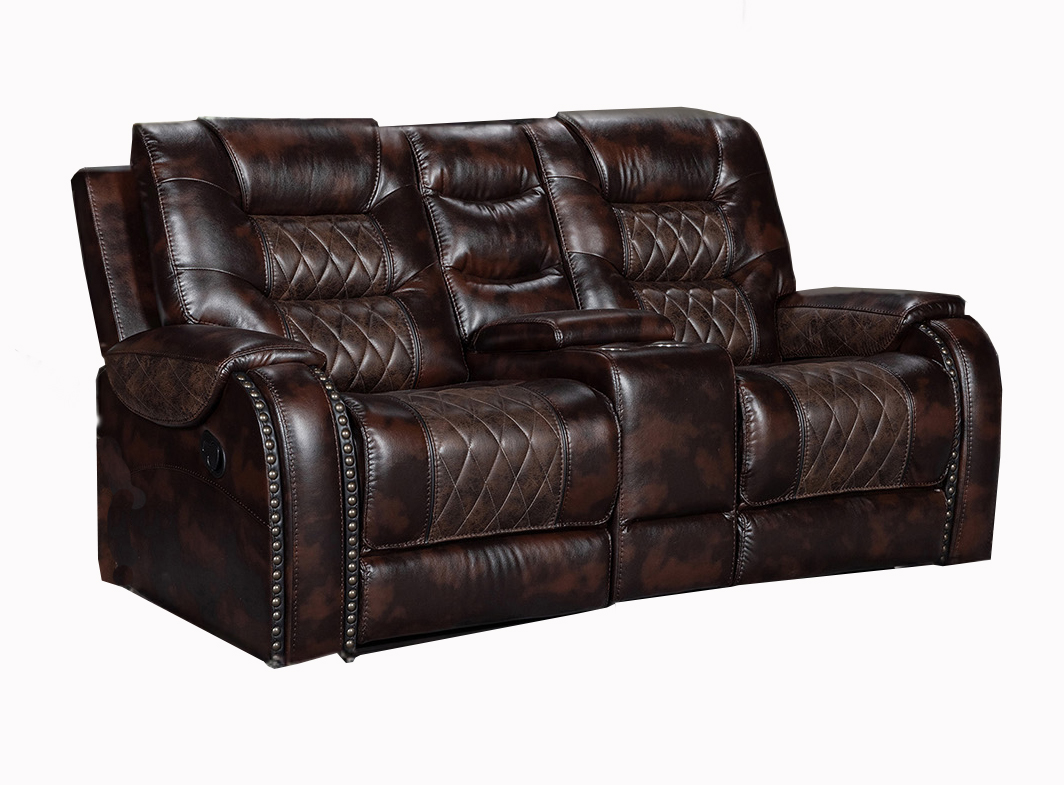 Causeuse inclinable avec console en cuir Gel brun foncé