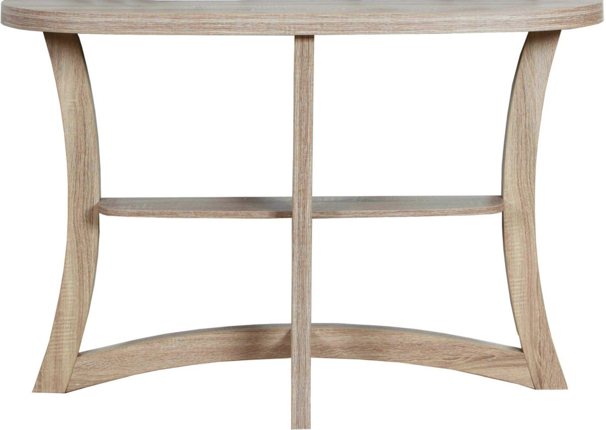 Rehausser votre corridor ou salle de séjour avec cette élégante console de hall fini d'une teinte taupe foncé. Amplement de rangement et une conception en deux niveaux font de ce meuble le choix sans équivoque pour présente vos objets décoratifs ou photos. Ça forme en demi lune et base courbé unique en feront un ajout idéal pour votre corridor.Read More