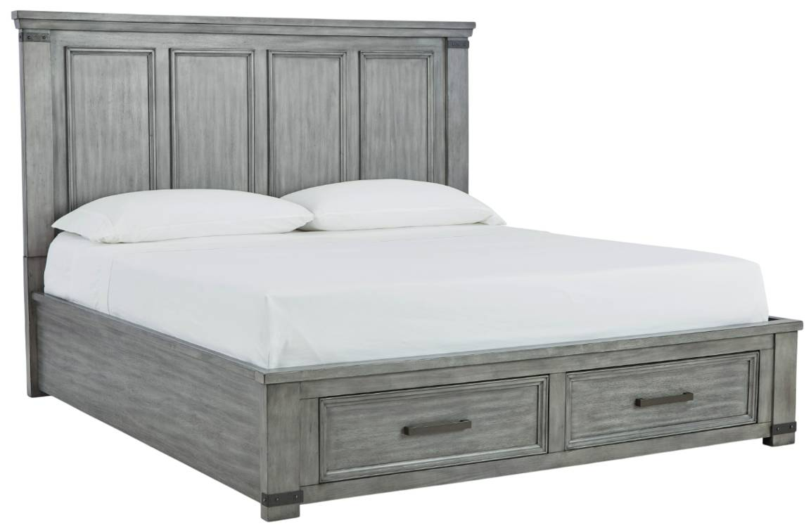 Avec sa coloration gris clair vieillie, ce lit de rangement transmet un style ferme urbaine très tendance. La moulure supérieure à profil épais de la haute tête de lit en forme de manoir apporte une touche de fraîcheur à un design intemporel.Read More