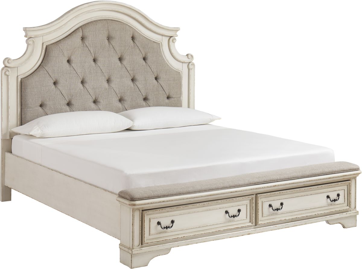 Comprend : Rails de panneau King avec lattes de rouleau, pied de lit de banc rembourré King/Cal King, tête de lit à panneau rembourré King/Cal King