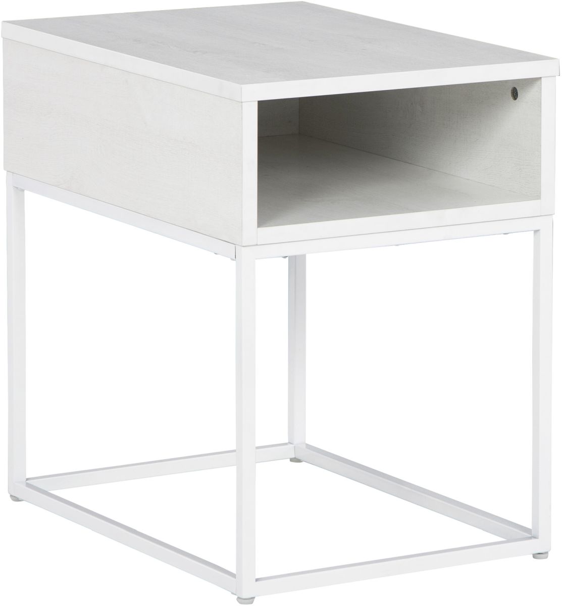 Faites une déclaration audacieuse en incorporant cette table étonnante dans votre maison. Cette table d'appoint Deznee est fabriquée avec un stratifié mélaminé durable et des cadres métalliques tubulaires et est présentée dans une finition de couleur blanche.Read More